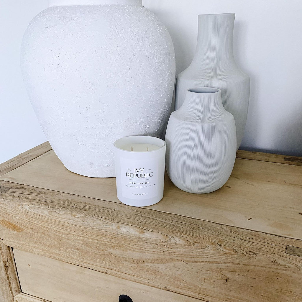 Details: Pure soy wax is infused with expertly blended fragrance oils and carefully poured into a thick white glass vessel to deliver over 80+ hours of home fragrance. Finished in Ivy Republic's sleek packaging, this candle provides the perfect gift for any occasion.